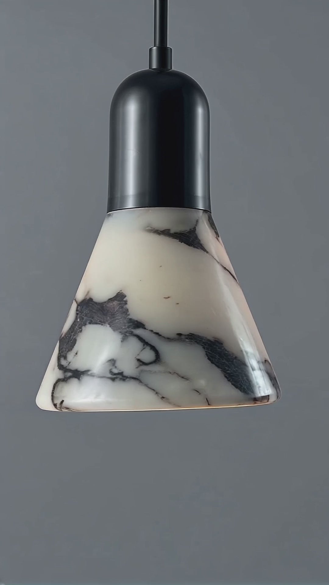A sculptural classic reimagined in rich, natural tones — the VA520 Marble Cone Pendant is defined by its elegant silhouette and striking materiality. Featuring a cone-shaped stone shade with marbled veining and a warm inner glow, this pendant adds visual texture and subtle luxury to any space.